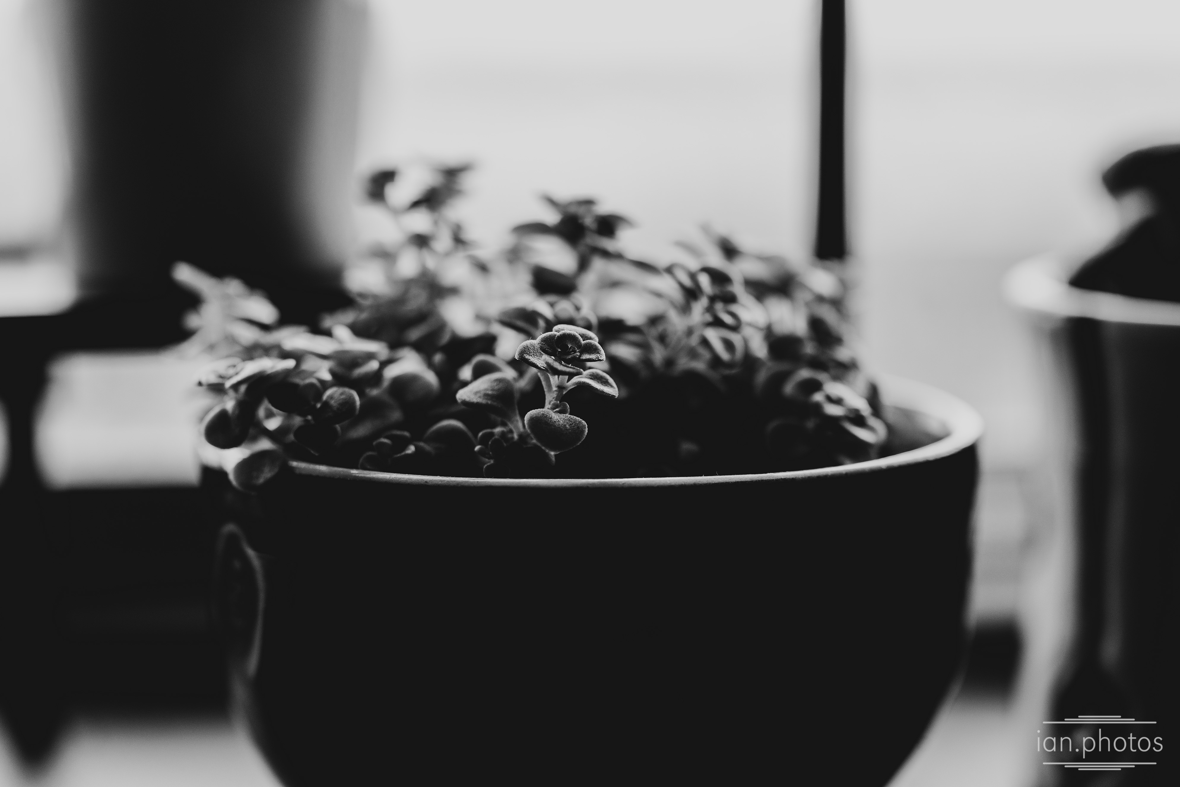You’ll rarely see black and white photos of plants, especially succulents, as many photographers prefer to expose the vibrance of their flowers and leaves. On the other hand I believe that with judicious use of Black and White, you can still allow a plant to shine, like this little succulent growing in my window garden.